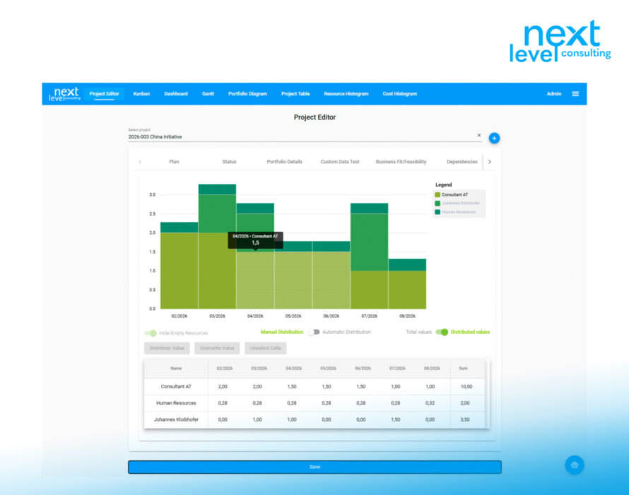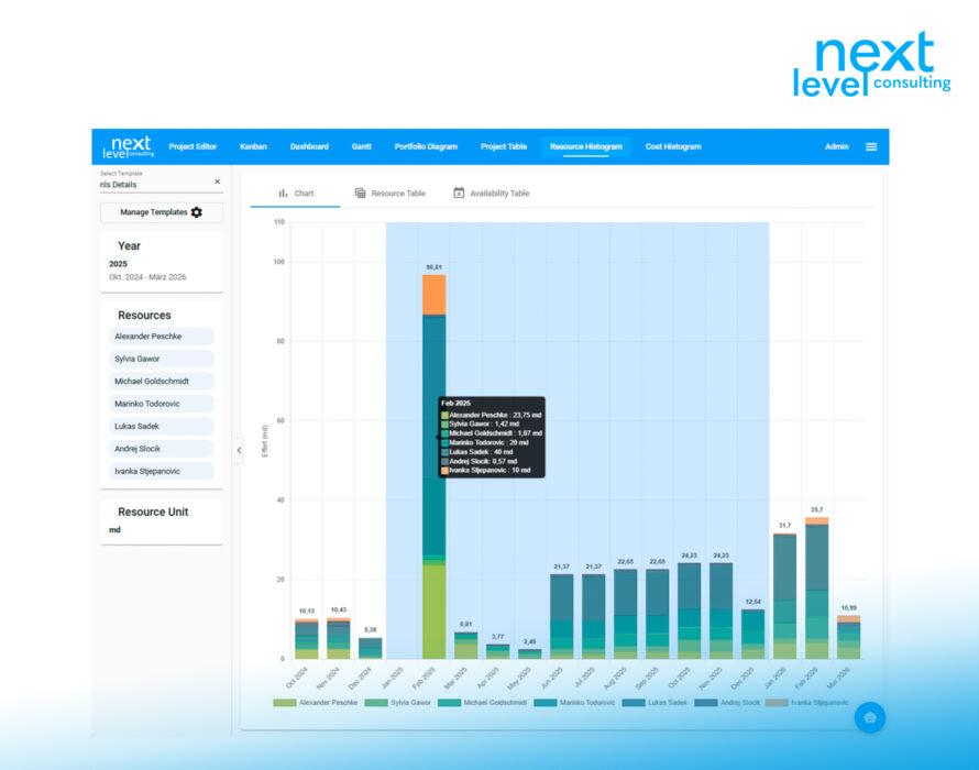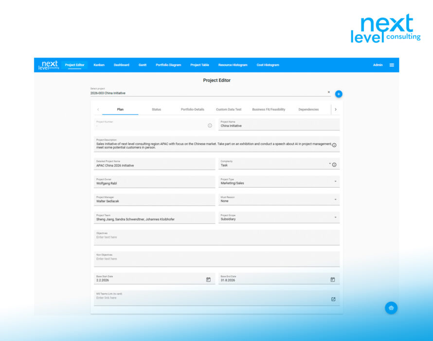 Typically, the customer hosts the technical infrastructure themselves; the system is already preconfigured in a way that makes sense. Master data such as strategies, resource types, or relevant project data fields can be modified and expanded by the customer.